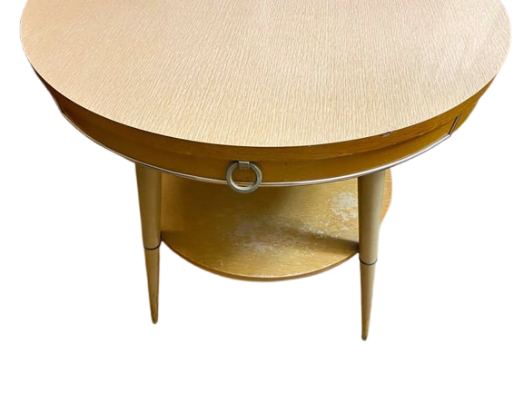 1950’s Antique/ Vintage Blonde Two Tier Table With Gold Tips On Legs