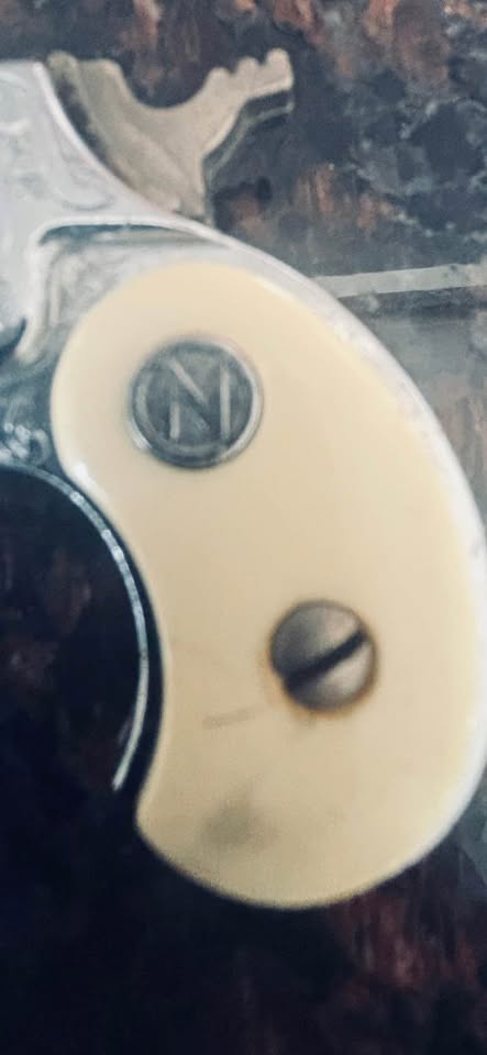 Vintage 1960s Nicholas Dyna-Mite cap cartridge loading toy cap gun with original box and clip has some spider cracking around the plastic grip probably caused by over tightening the screw. Overall, this is in very nice condition. A must have for any toy / toy cap gun collector.