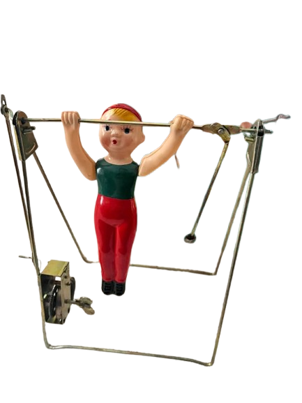 Vintage 1960’s “Single Bar Exercise” toy with wind-up mechanical action.