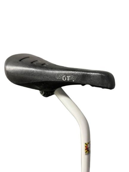 Fully restored Bmx GT Old School bike with three piece reissued crankset with original sprocket GT Mellet, and aggressor accessories. Also has Odyssey RX three levers an original OG GT tires