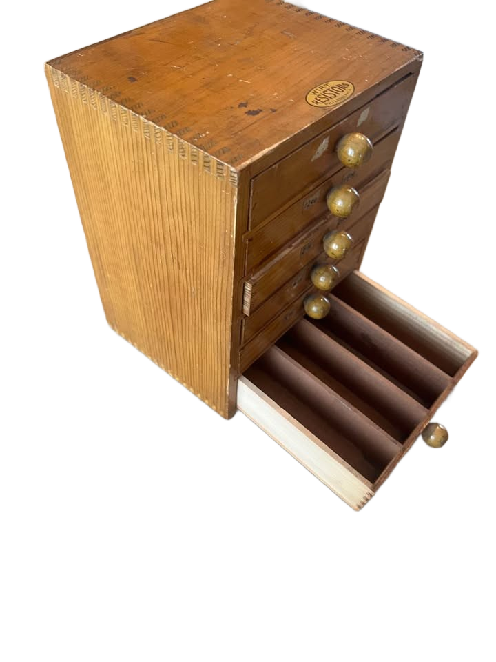 A Rare Vintage Wirt Resistors 6 Drawer Cabinet w/ Dove Tail Joints