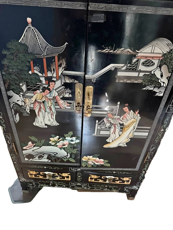 Vintage Asian lacquer cabinet. Some of the lacquer is peeling in the corners. Otherwise in great condition.