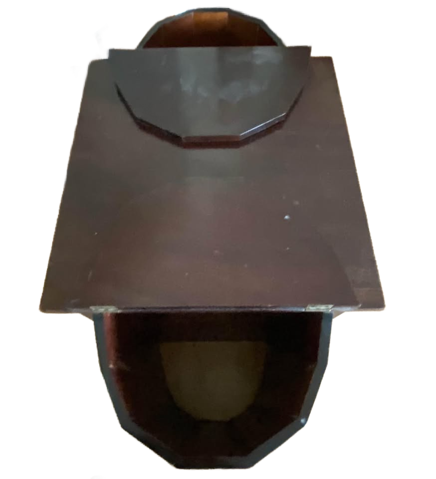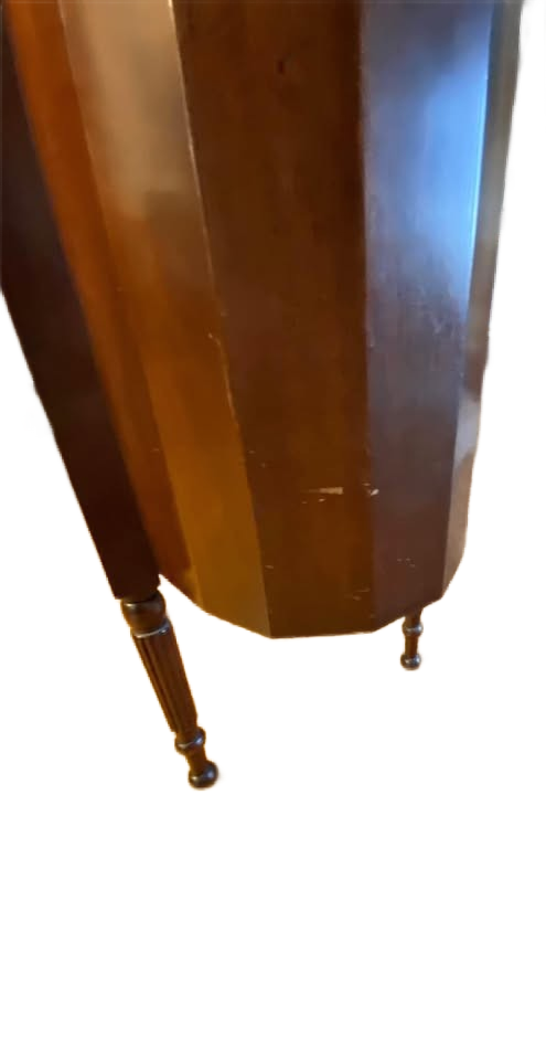 Mahogany, 3 drawer cabinet with visible hinges (indicates pre 1911) and wood knobs.