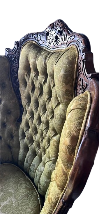 Arm to arm 30 inches 48 inches tall 36 inches wide at the top Seat cushion, 20 inches deep Approximately 2 feet deep