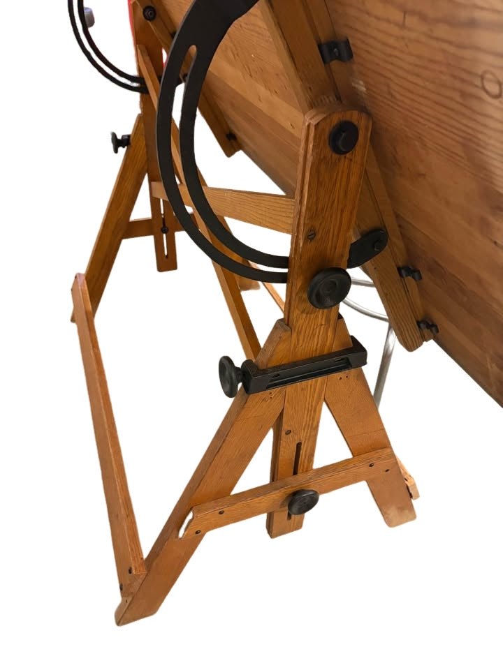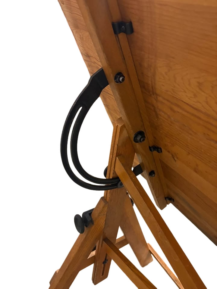 Still has the original top which is in very good condition which is rare. All oak and cast iron base. Very nice overall. Top is 60” by 36”. 53” tall as shown at mid height