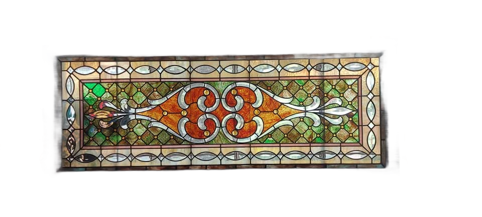 Antique stained glass transom-light window