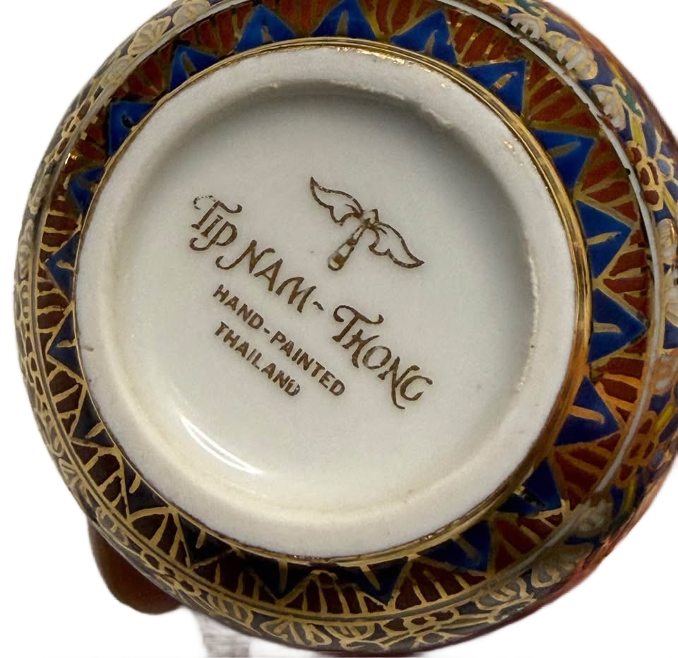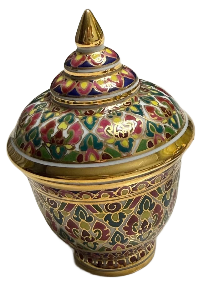 Beautiful Hand Painted Benjarong Small Trinket Jar/Dish With Lid Gold Set of 3