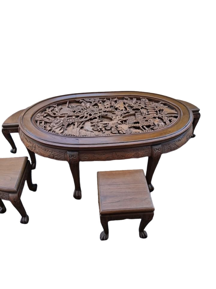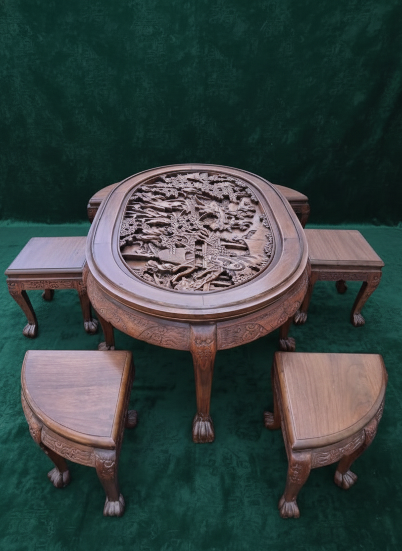 Table 52"Lx30"W×21"H 6 stools 13"tall