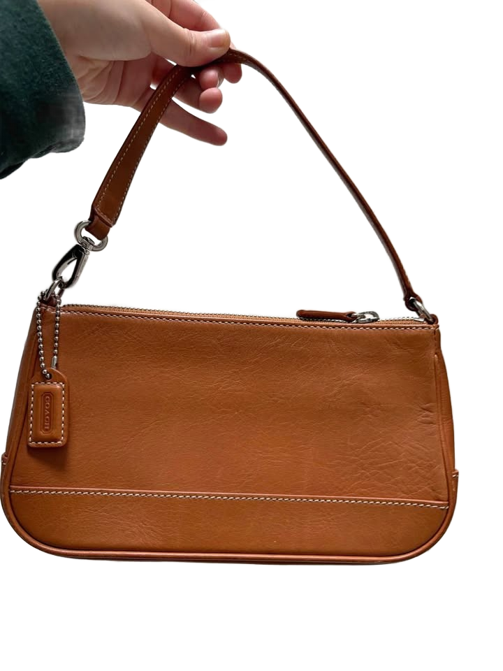 Pre-owned Coach brown small shoulder bag. Authentic leather and in great condition with no scratches or issues. Zipper inside for a small compartment.