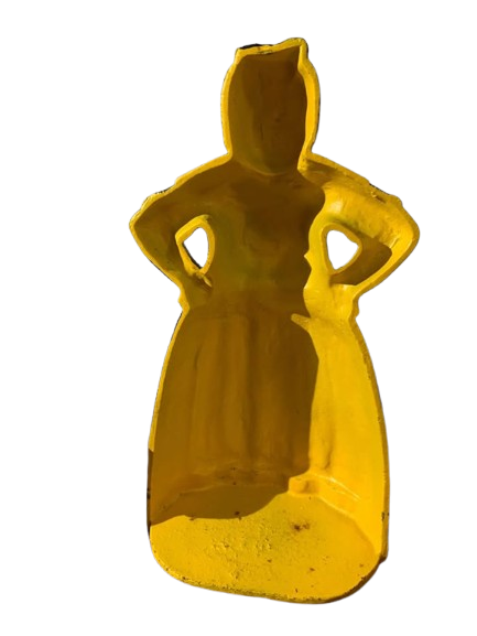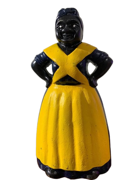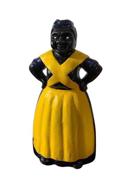Collection of Aunt Jemima Heavy cast iron Banks and Door stop. Small blue bank is 5 inches tall. Large Red bank is 10 inches tall and Large Yellow Door Stop is 13 inches Tall. Selling together as a set.