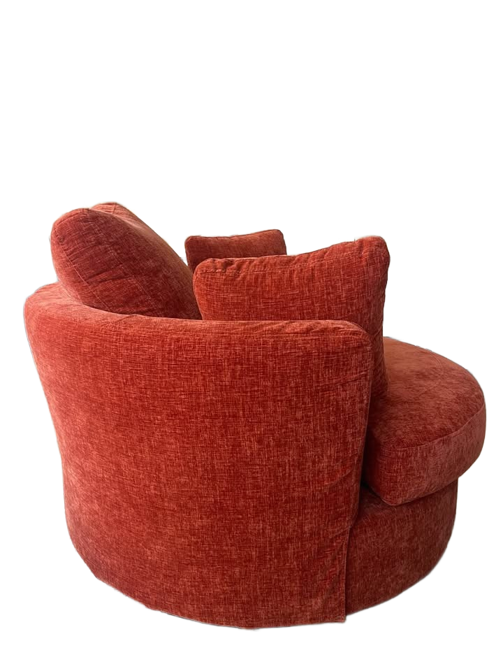 Fun, circular accent chair with 360 degree swivel and three pillows included.