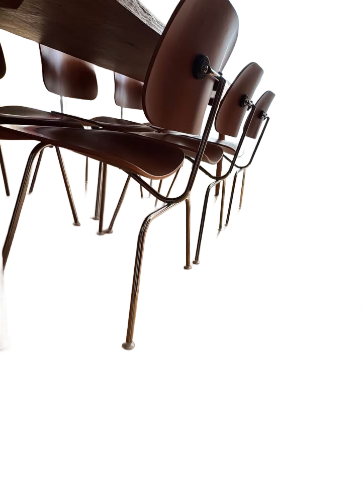 The Eames DCM chair, designed by Charles and Ray Eames, revolutionized furniture design in the 1940s with its innovative use of molded plywood and iconic, free-flowing curves.