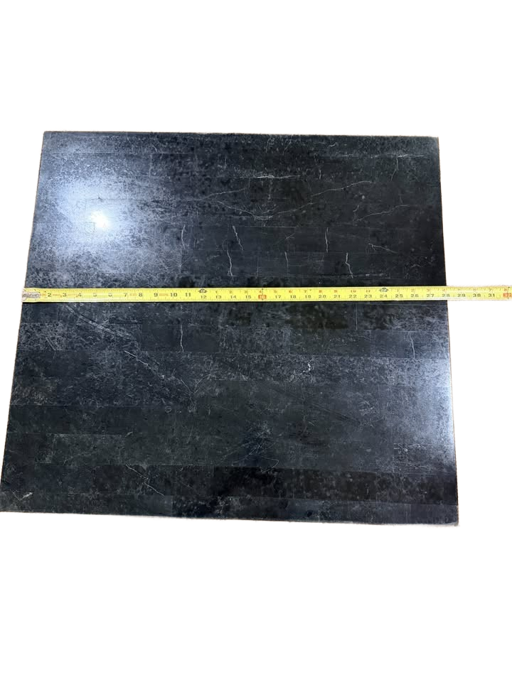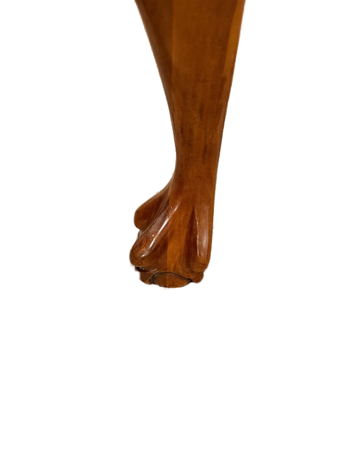 Highly Detailed Square Side Table with a veneer stone top,claw feet, solid wood with shell carvings. Vintage approx. 30 years old. Top measures 26" x 28" by 22" Tall.