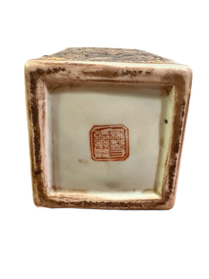 Finely Painted Chinese Famille Rose Square Pocelain Vase - 15"