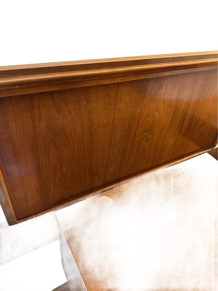 Walnut king headboard and (2) 2 drawer nightstands from Dixie, 1960’s 24w 15d 23.5h/nightstands 78w 38h/headboard
