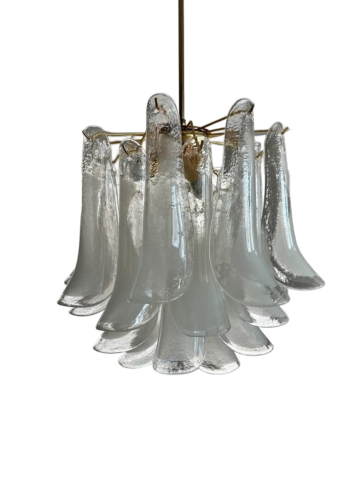 Mid-century modern Mazzega Murano glass petal chandelier with a brass frame