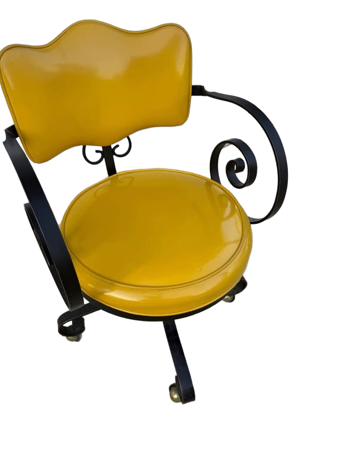 Mid-Century Modern Swivel Chair with Yellow Vinyl Upholstery and Black Metal Frame