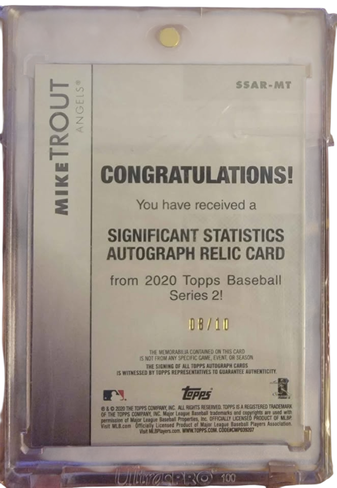 MIKE TROUT 2020 TOPPS SERIES 2 AUTO JERSEY 8/10