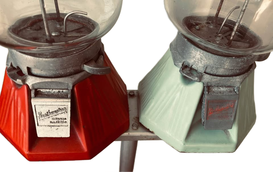 Pair Antique Northwestern Peanut / Gumball Machines w/ stand