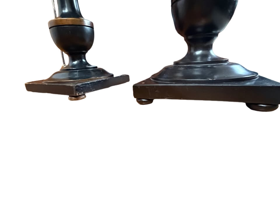 Pair of Antique Ebonized Empire Style Pedestal Tables - Mirrored Tops (1940s Hollywood Regency