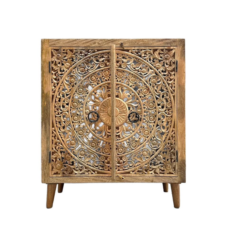New, and handmade from solid mango wood. Measurements: 35"w x 16"d x 42"h