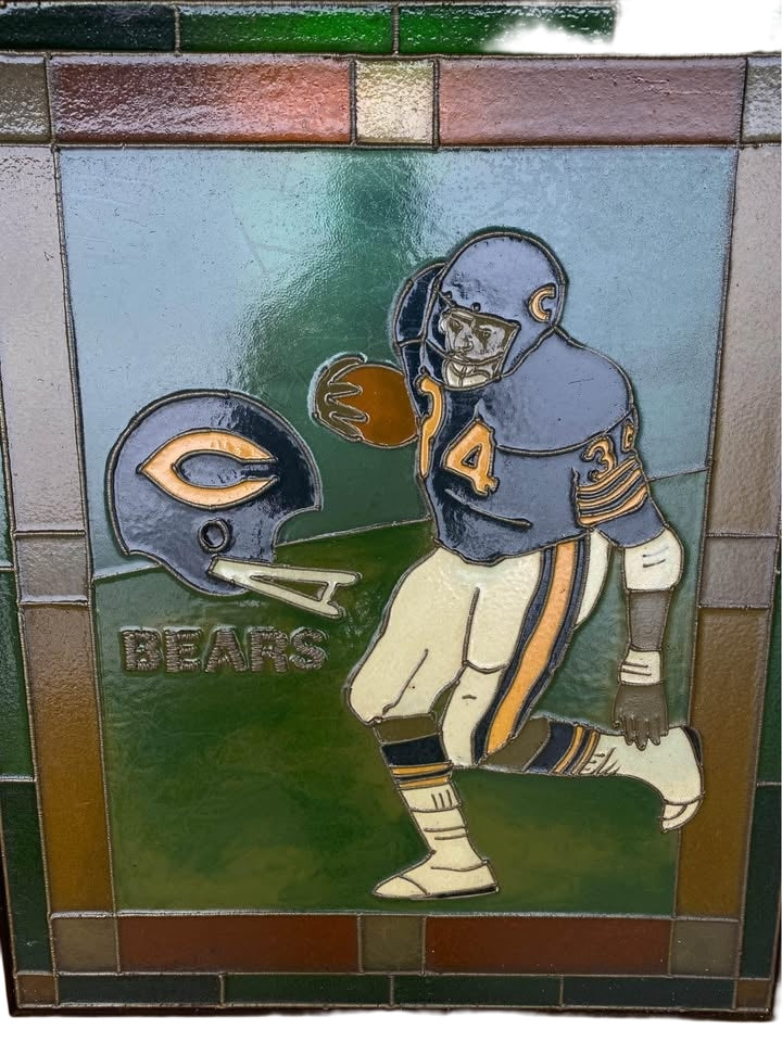 Rare Custom Vintage Chicago Bears Walter Payton Stained Glass like Artwork 38x32