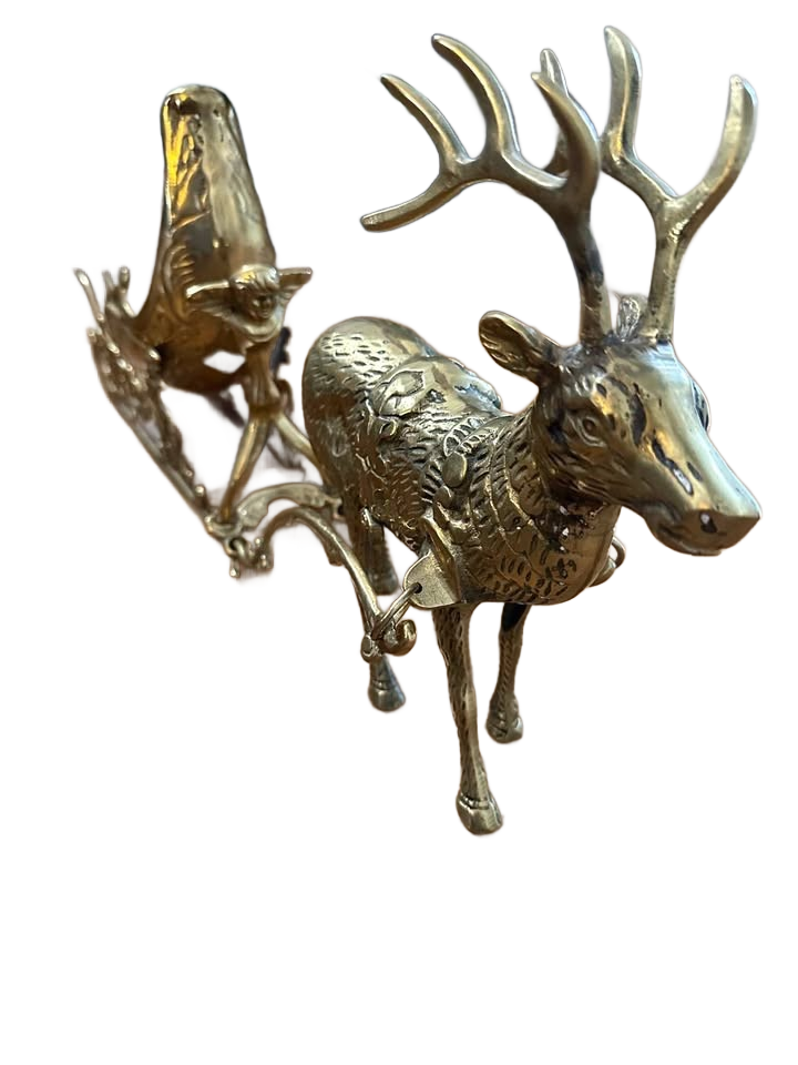 Reindeer and heavy brass sleigh of large size of 25" long VTG Christmas around the world