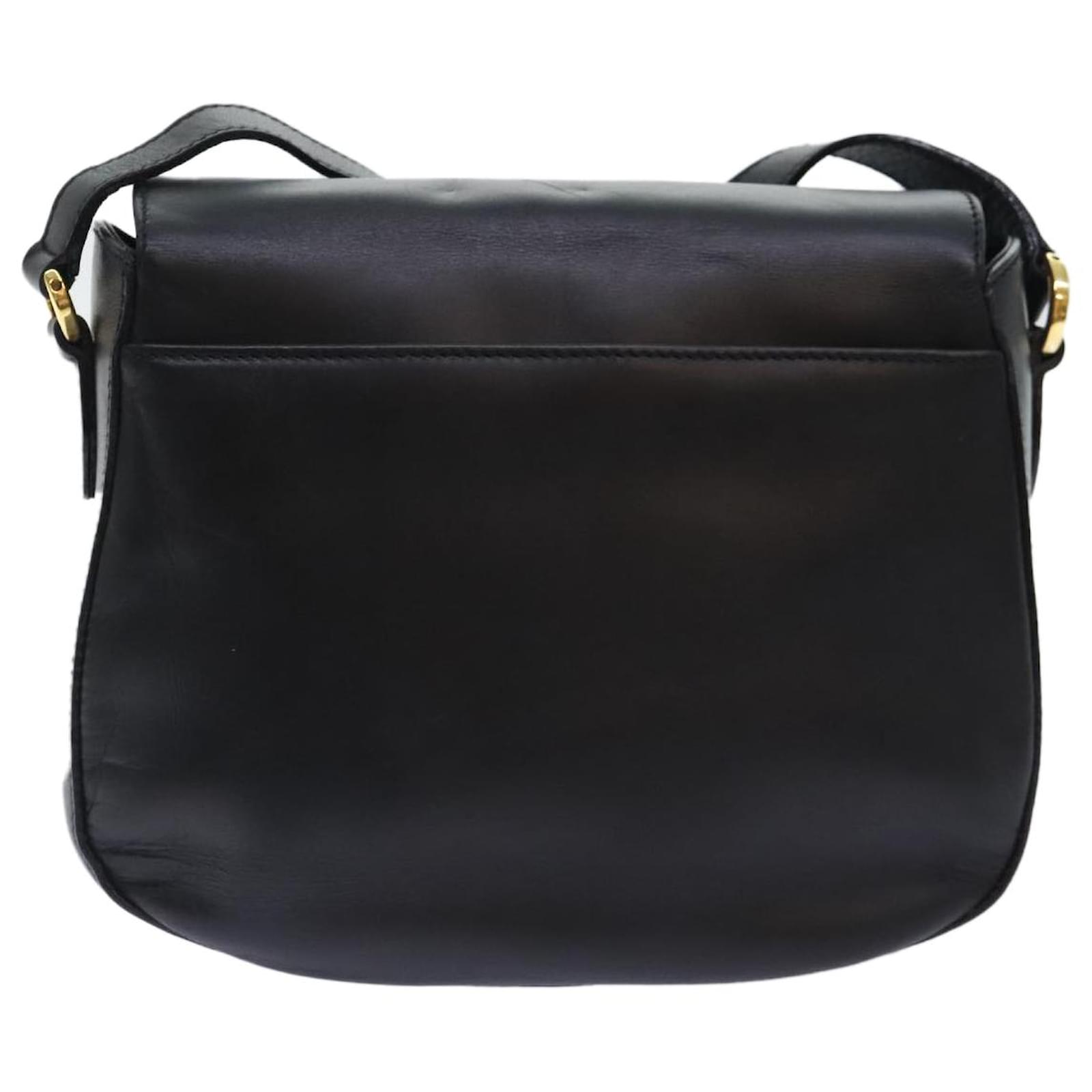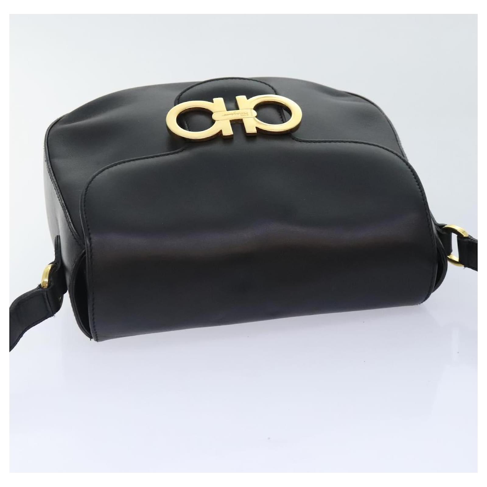 Salvatore Ferragamo Gancini Shoulder Bag Leather Black Gold Auth 91278 Golden
