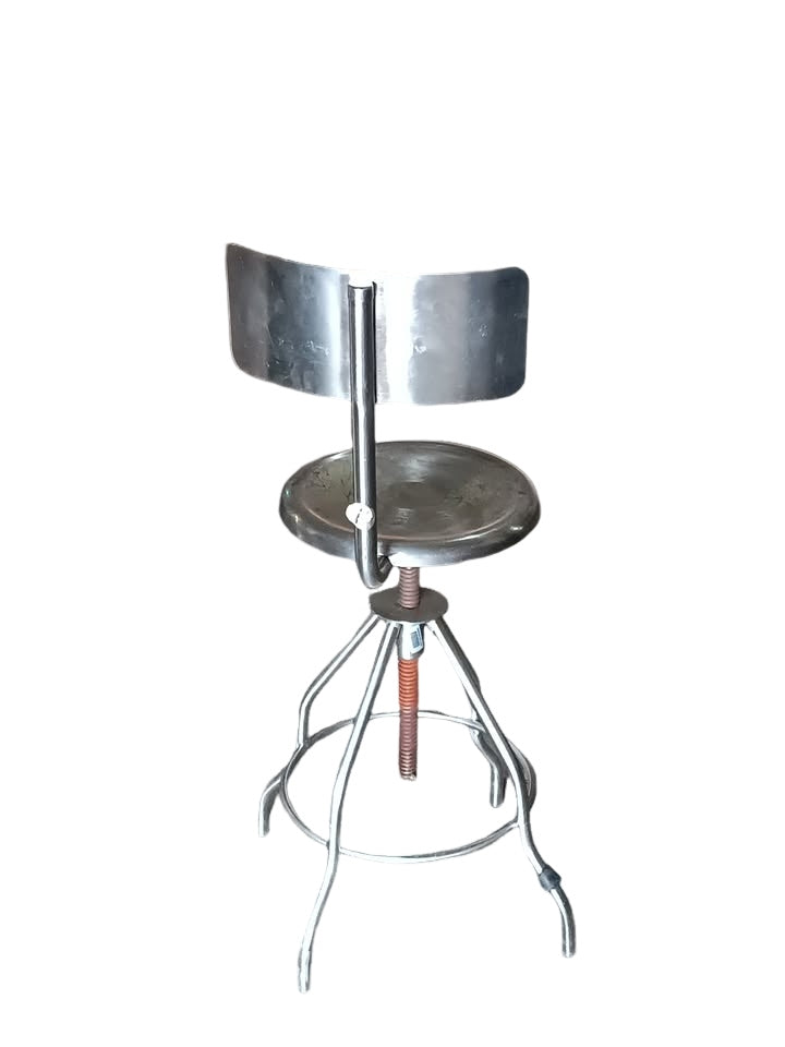 Unbranded adjustable stainless steel lab stool w/ back, screw lift, foot ring