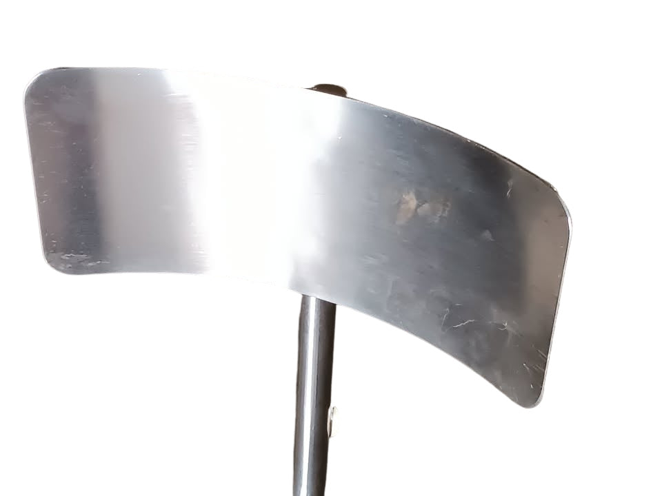Condition notes: - Used with cosmetic wear from regular use: scratches/scuffs on seat and back, oxidation on the threaded post, sticker residue, and general finish wear. Some feet appear to be missing end caps. See photos for exact condition. Included: stool only, as pictured.