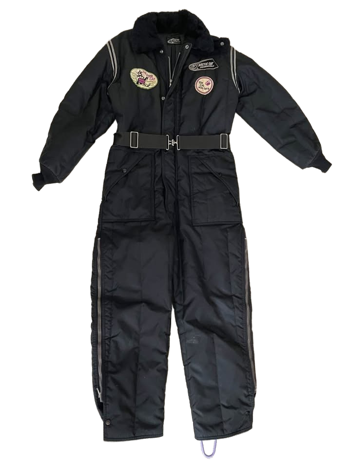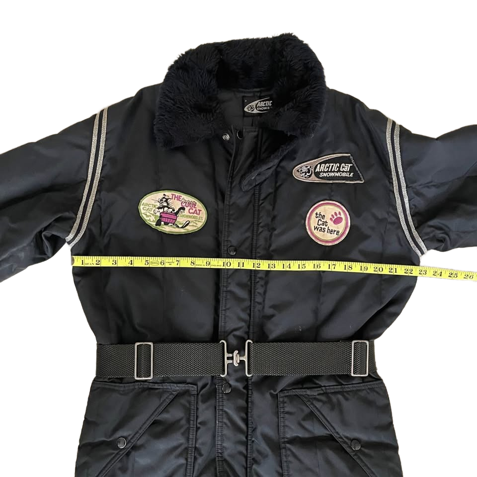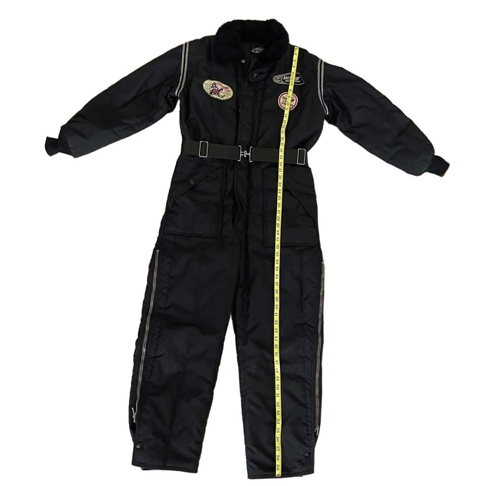 refer to photos for measurements. Note original metal zippers and snaps showing rust at neck tab.
