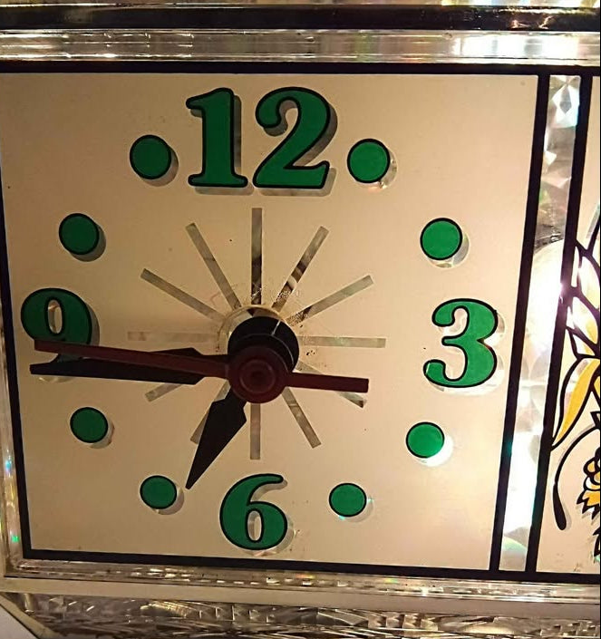 Beer Advertisement Clock Crystal cut look, but made of plastic , Good working cond ,1980s, beautiful display accent for entertaining room
