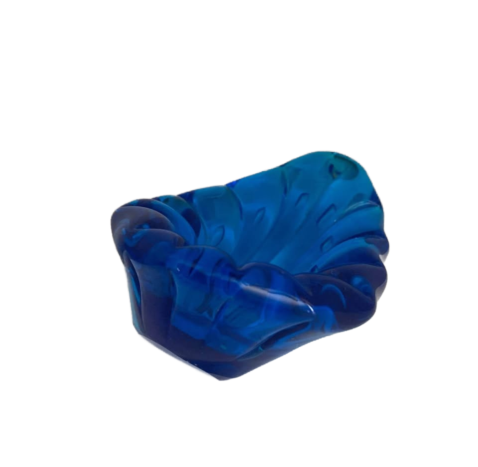 Vintage Blenko Style Glass Ashtray Turquoise / Jewelry Holder It looks like Blenko Winslow Anderson Design