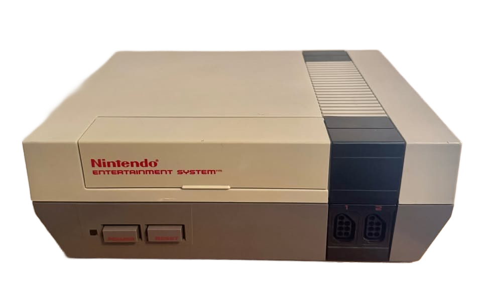 Nintendo (NES) from the 1980's. The Nintendo works good and comes with two original controllers, a power supply, new AV cables, and four games (Super Mario Bros. 2, Super Mario Bros. 3, Tetris, & Golf)
