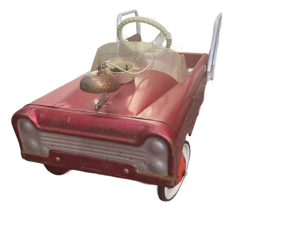 VITAGE PEDAL CAR FIRE FIGHTER 508 ALL ORIGINAL. JUST NEEDS A COAT OF WAX AND ITS READY TO GO. RARE WHITE STEERING WHEEL. USE THE PICTURES AS PART OF THE DESCRIPTION