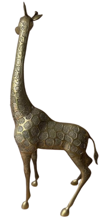 Vintage Set of 2 Large Matching Brass Giraffe Statues MCM 37” & 33.5” Tall