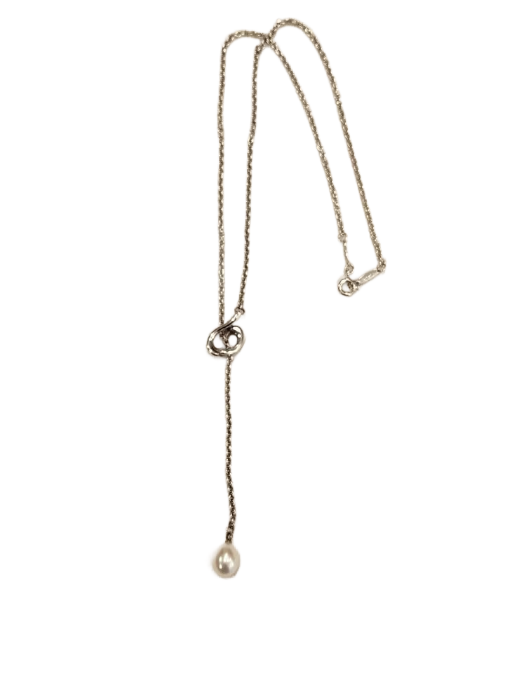 VINTAGE TIFFANY & CO Elsa Perette Wave Silver Necklace w/Pearl Drop❣️