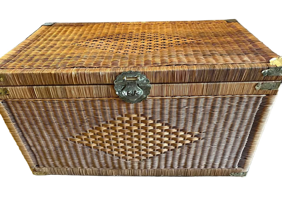 Vintage Wicker Rattan Storage Trunk with Brass Hardware – Boho Coastal Style